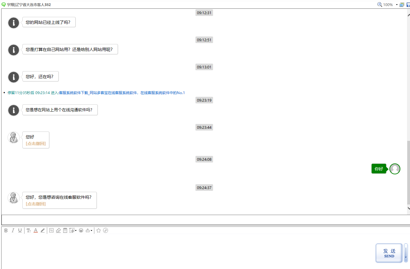 9.客服端新增--【客服端主窗口-系统-选项-对话窗口-自动消息设置】新增当网站或APP的访客点击打开在线客服后,客服系统自动将设置好的消息按设置的时间自动发送给访客的功能
